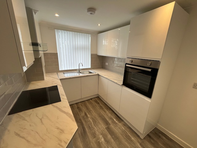 Internally the flat comprises of a double bedroom with built in wardrobe, separate lounge and seperate kitchen with modern matching base and wall units and marble effect worktop and tiled spashback to finish. There is a built in electric oven and gas hob and washing machine and fridge but the landlord will not be responsible for their upkeep should you breakdown.